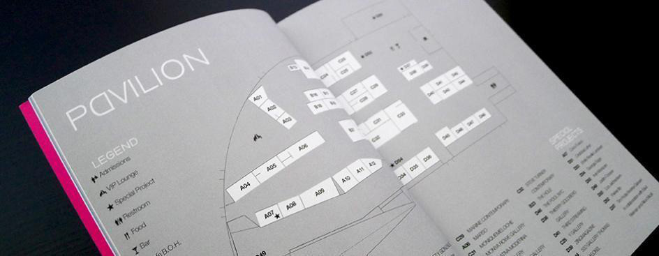 Managed partnerships with International galleries for the design and development of event guide book and promotional mailing with art prints. Designed event map for wall mounting, and booth signage.
